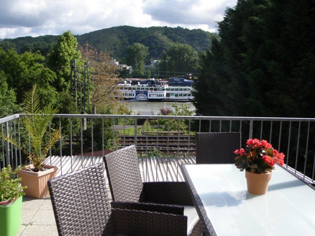 Schöne, großzügig und gemütliche Ferienwohnung, zentral gelegen im Weltkulturerbe Oberes Mittelrheintal, direkt am Rhein mit großer Rheinterrasse und gehobener Ausstattung. Genießen Sie von der großen Rheinterrasse oder im Garten zur Mitbenutzung, ausgestattet mit Sitzmöbeln und Sonnenliegen, den direkten Blick auf den Rhein. Die Wohnung befindet sich im Erdgeschoss unseres Hauses, ist 98 m² groß und aufgeteilt in einen großzügigen Wohnraum mit Esszimmer, Küche mit Zugang zum Balkon, zwei Schlafzimmer sowie ein Badezimmer. Sie ist für vier Erwachsene oder zwei Erwachsene und Kinder geeignet. Die Wohnung ist nicht barrierefrei! Die kleine Stadt Rhens bietet neben Bäckereien, Restaurants auch Einkaufsmöglichkeiten an. Zahlreiche Wander- und Radwege starten in unmittelbarer Nähe zur Ferienwohnung. Auch ein Schiffsanleger erreichen Sie in 10 Gehminuten.
