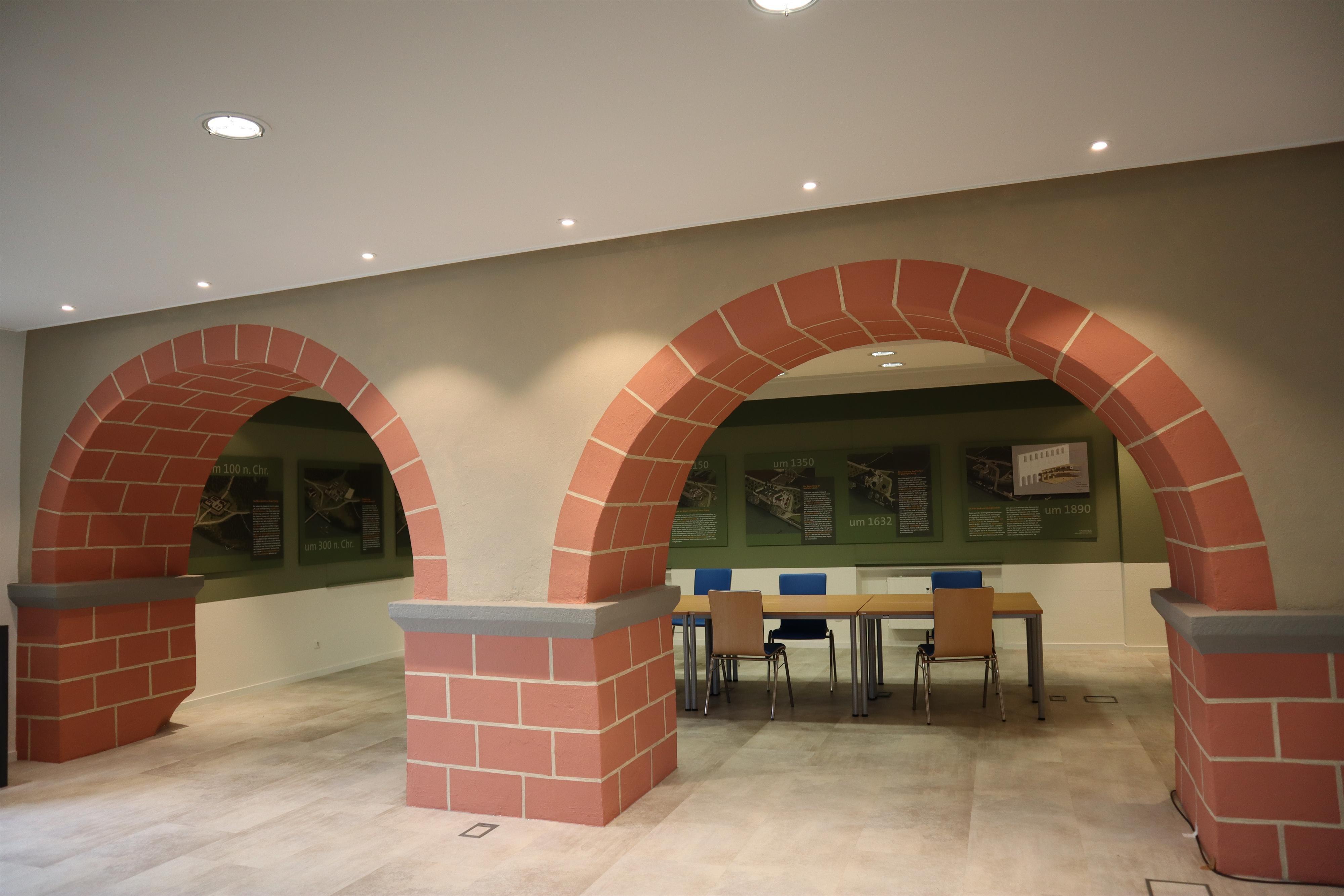 Hildegard von Bingen verließ zwischen 1147 und 1151 ihr Heimatkloster auf dem Disibodenberg und gründete an der Nahe ihr Kloster auf dem Rupertsberg. In ihren knapp 30 Jahren auf dem Rupertsberg verfasste sie ihre Hauptwerke. Während des Dreißigjährigen Krieges wurde das Kloster zerstört. Von der Klosterkirche sind nur sechs Pfeiler der südlichen Mittelschiffwand erhalten. In der Villa am Rupertsberg ist – ausgehend von den Original-Klosterarkaden aus der Hildegard-Kirche – das verschwundene Hildegard-Kloster „wiedererstanden“ und kann mithilfe digitaler Technik mit allen Sinnen entdeckt werden: Erleben Sie, wie der verschwundene Chor durch virtuelle Rekonstruktion und ein wenig optische Täuschung die Original-Überreste so ergänzt, dass man sich inmitten der Hildegard-Kirche wiederfindet.