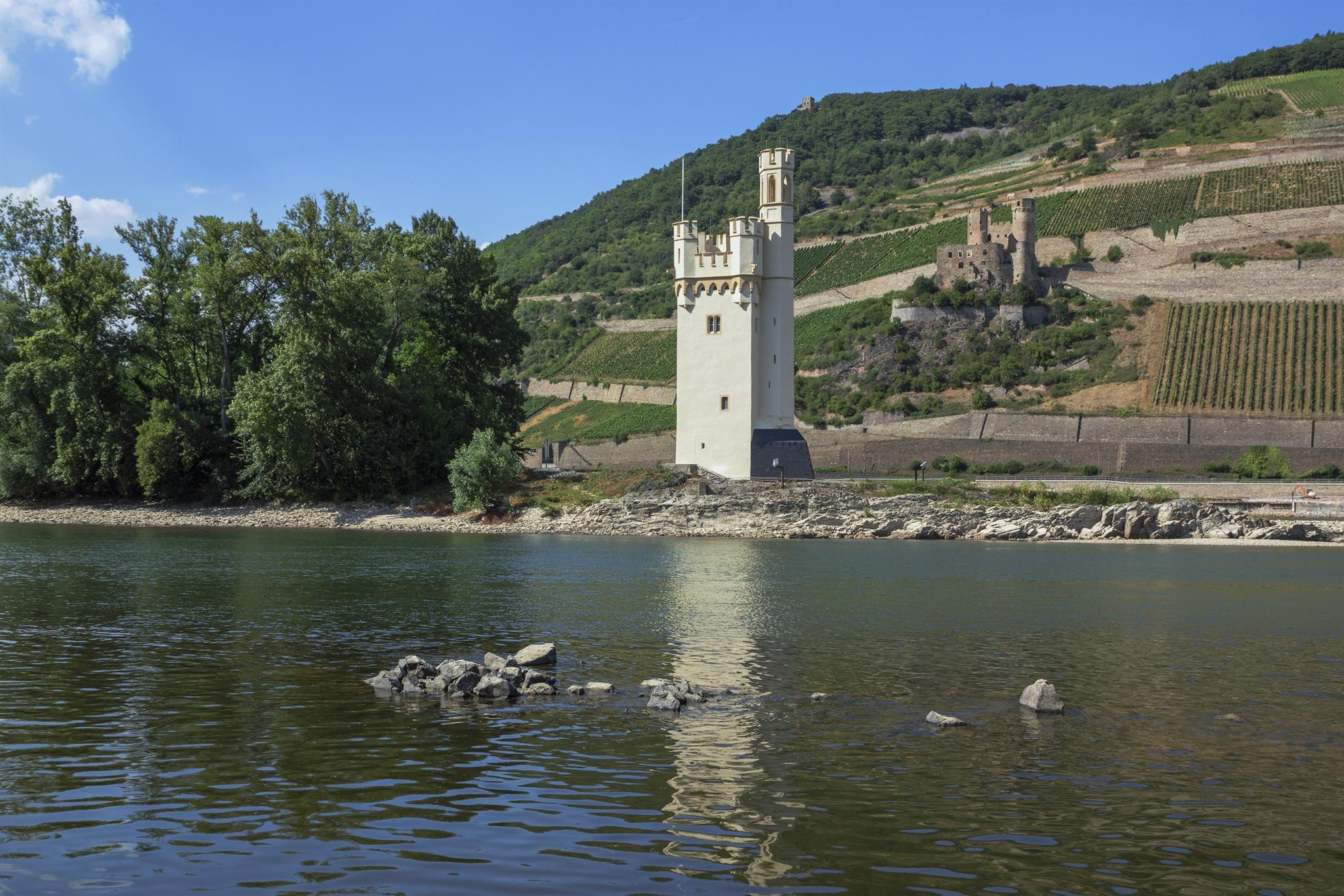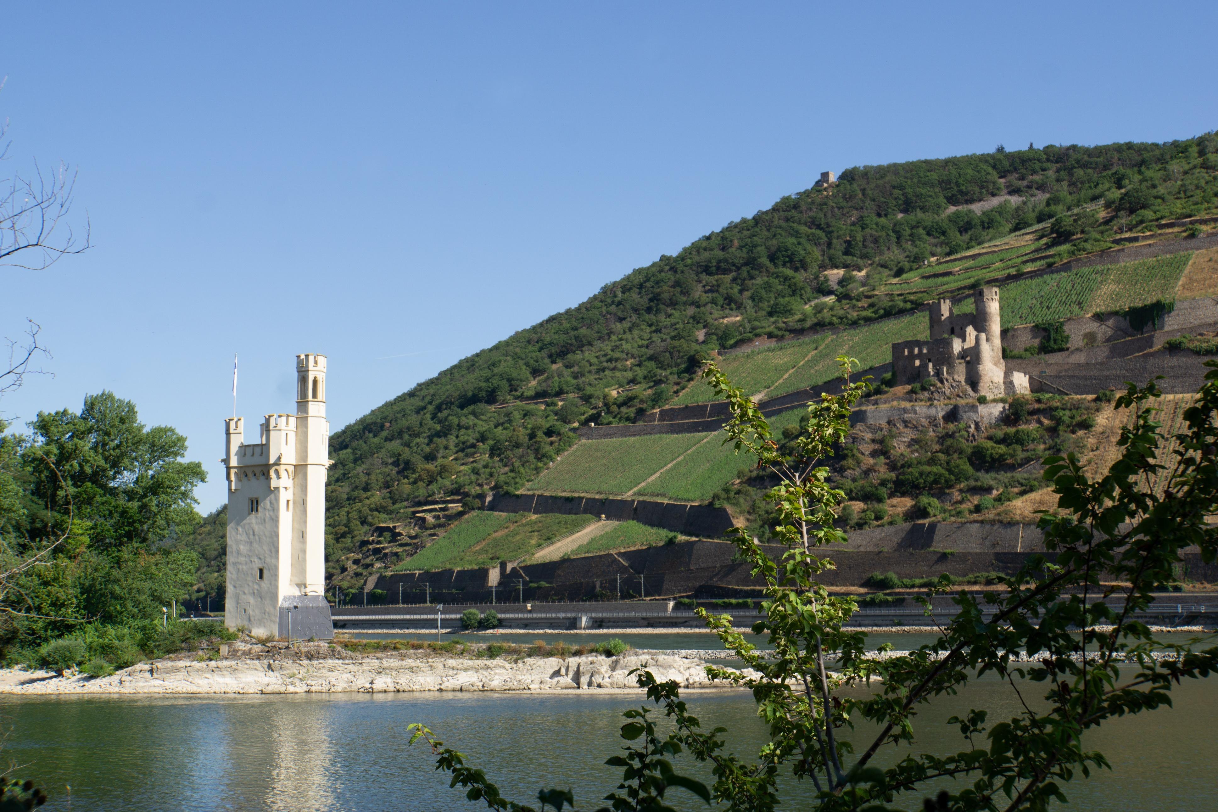 Historische Überlieferungen und Legenden ranken sich um den Turm auf der kleinen Rheininsel vor Bingen. Tatsache ist wohl, dass schon die Römer hier eine kleine Befestigungsanlage bauten. In der Herrschaftszeit der Franken verfiel diese aber mehr und mehr. Erst als Hatto II. 968 die Führung im Erzbistum Mainz übernimmt und Souverän über Bingen wird, gewinnt der Turm wieder an Bedeutung. Der Name „Mäuseturm", der 1516 erstmals belegt ist, leitet sich wohl von seiner Funktion als Wachturm (mittelhochdeutsch „musen" = lauern) ab. Doch der Turm wurde schon im 16. Jahrhundert mit der Legende von Bischof Hatto in Verbindung gebracht, der hier als Strafe für seine Unbarmherzigkeit bei lebendigem Leibe von Mäusen aufgefressen worden sei. Im Jahr 1298 wird der Turm in das Zoll- Sperrsystem der Burg Ehrenfels einbezogen.1689 zerstören französische Truppen das Bauwerk. 1855 errichten die Preußen auf der Insel einen Signalturm für die Schifffahrt, wie er heute noch zu sehen ist.