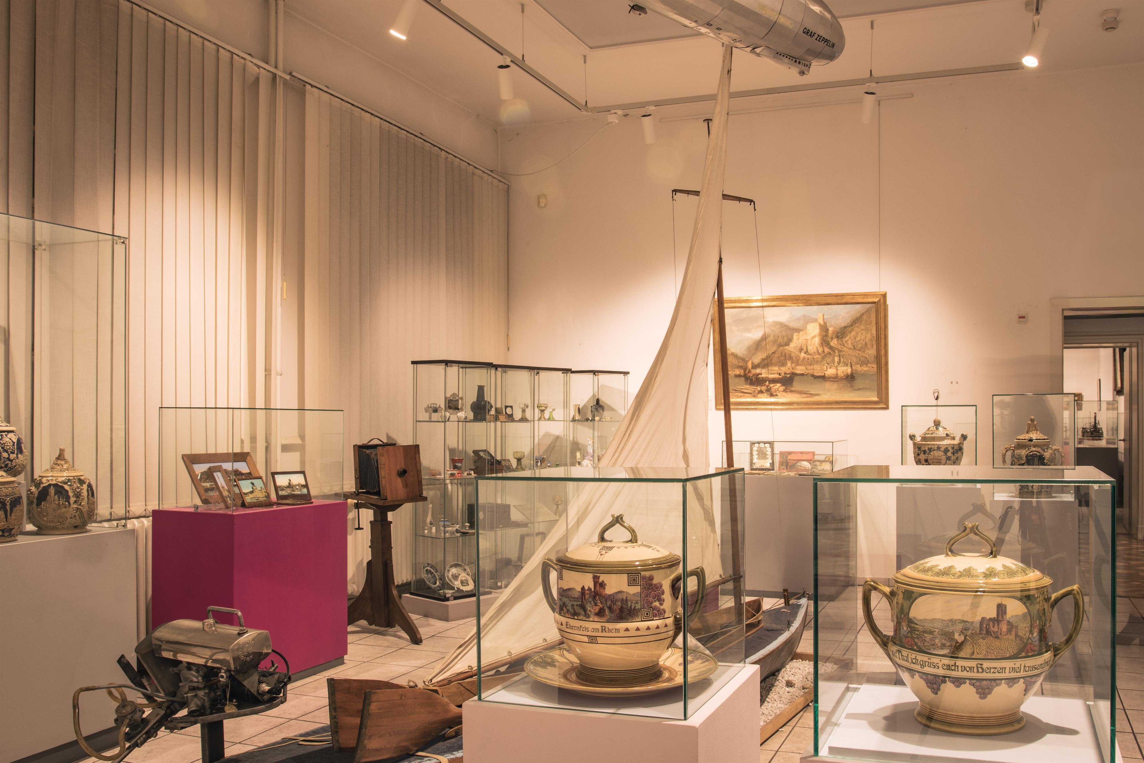 Auf mehr als 1400m² Ausstellungsfläche erfährt und erlebt der Besucher alles zur wechselhaften Geschichte am Rhein. Die Exponate reichen vom Neandertaler bis hin zu herausragenden Werken der Rheinromantik.