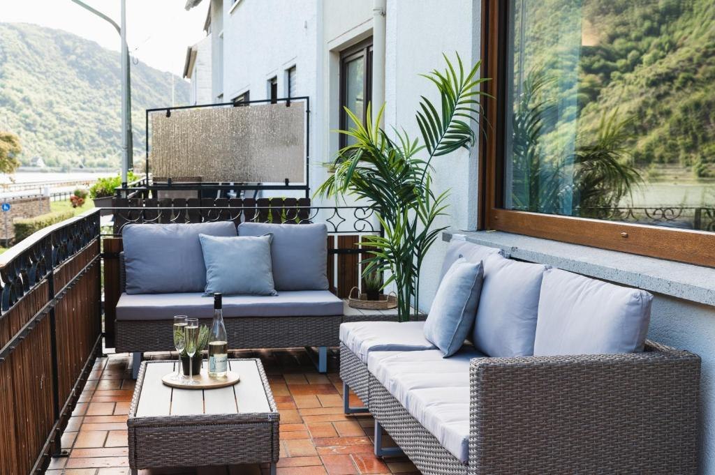 Erleben Sie unvergessliche Tage im UNESCO-Welterbe Mittelrheintal! Unsere großzügige, hochwertig ausgestattete Ferienwohnung liegt in Boppard-Bad Salzig und bietet Ihnen einen direkten, unverbaubaren Blick auf den Rhein – das absolute Highlight dieser Unterkunft. Highlights auf einen Blick: - Direkter Rheinblick - Großer Balkon mit gemütlicher Sitzlounge - Hochwertige Ausstattung - Offener Wohn-Essbereich - Idealer Ausgangspunkt für Ausflüge - 2 Schlafzimmer mit Kingsize Betten + SchlafcouchHallo, ich bin Paulina – Mama von zwei wundervollen Kindern und leidenschaftliche Home Stagerin. Beruflich beschäftige ich mich seit vielen Jahren mit Immobilien und weiß, wie wichtig eine liebevolle, durchdachte Gestaltung für ein gutes Wohngefühl ist. Reisen gehört zu meiner großen Leidenschaft, daher habe ich meine Ferienwohnung so eingerichtet, wie ich selbst gerne wohnen würde: stilvoll, gemütlich und mit viel Liebe zum Detail. Mir ist es wichtig, dass sich meine Gäste vom ersten Moment an wohlfühlen und ihren Aufenthalt entspannt genießen können. Gerne stehe ich euch bei Fragen oder Tipps zur Umgebung zur Verfügung und freue mich darauf, euch als meine Gäste willkommen zu heißen.Die Ferienwohnung liegt zentral in Bad Salzig, direkt an der Bundesstraße und am Rheinufer, sodass Sie sich in der Umgebung leicht zurechtfinden. Cafés, Restaurants, Bäckereien und Einkaufsmöglichkeiten sind nur wenige Minuten zu Fuß entfernt. Radwege direkt am Rhein laden zu entspannten Touren entlang des Flusses ein. Der nahegelegene Bahnhof Bad Salzig ist in wenigen Gehminuten erreichbar und bietet bequeme Verbindungen zu Ausflugszielen wie Boppard, Koblenz oder der Loreley. Öffentliche Parkmöglichkeiten stehen direkt in der Straße zur Verfügung.Gesprochene Sprachen: Deutsch,Englisch,Russisch