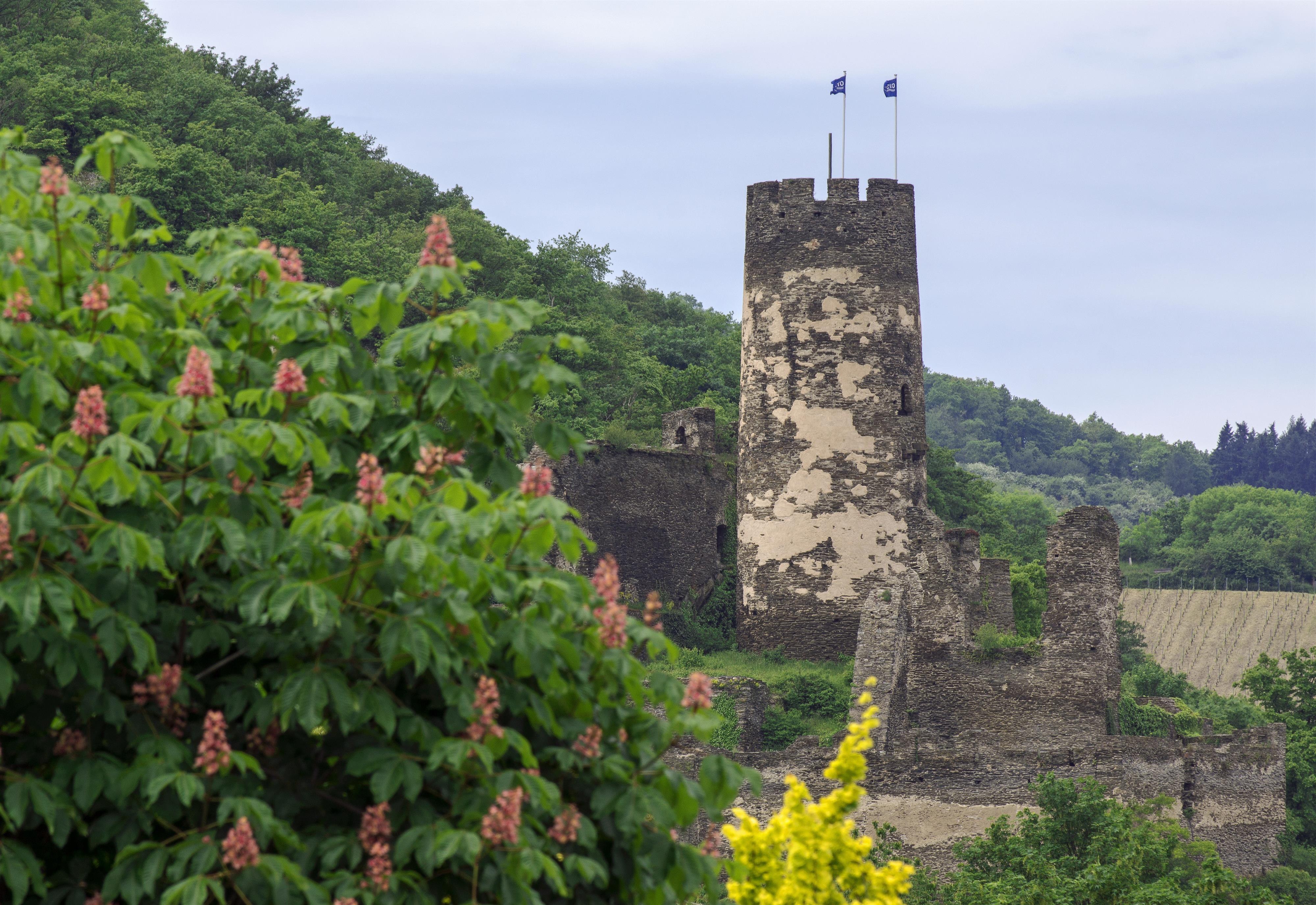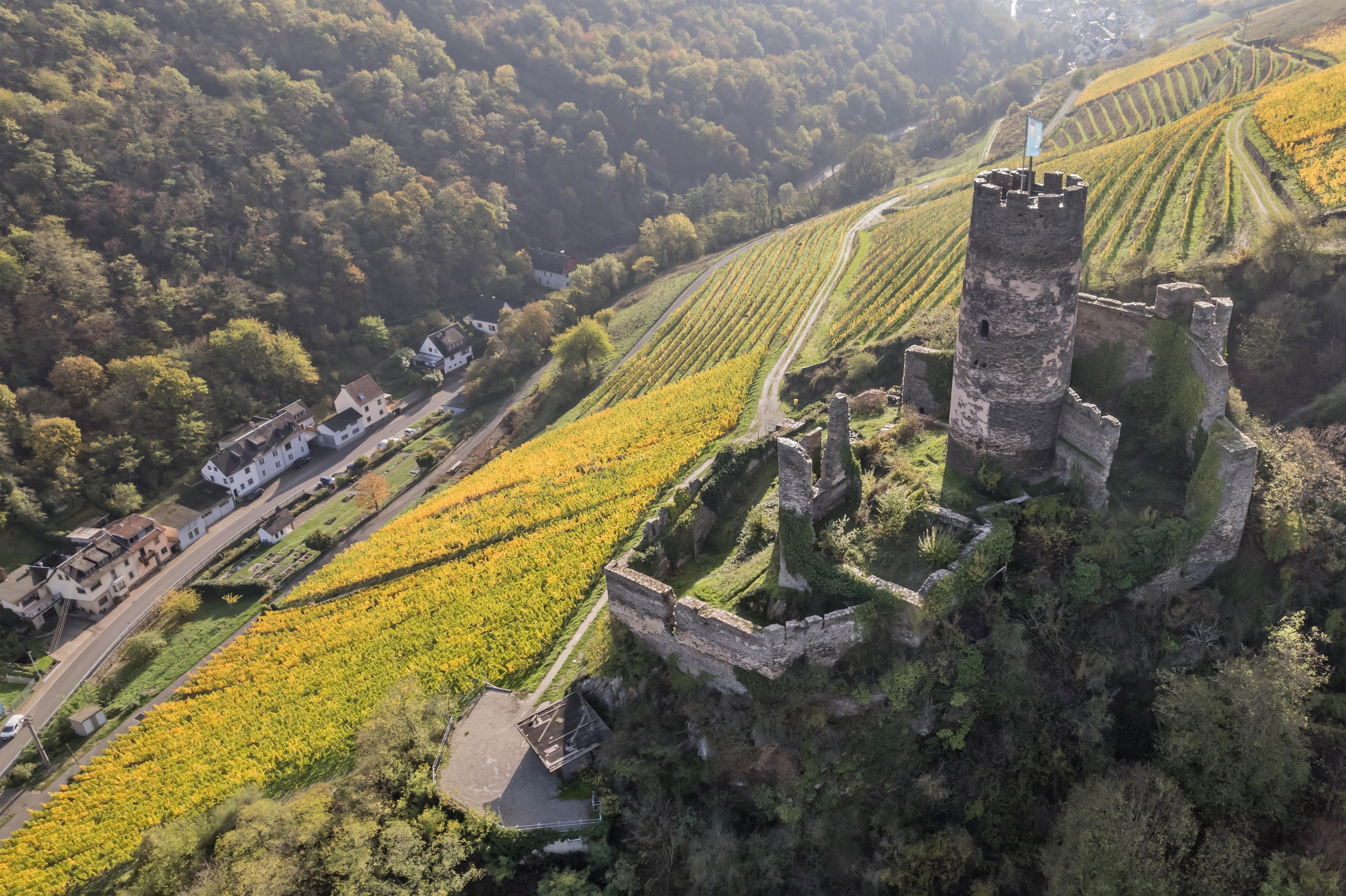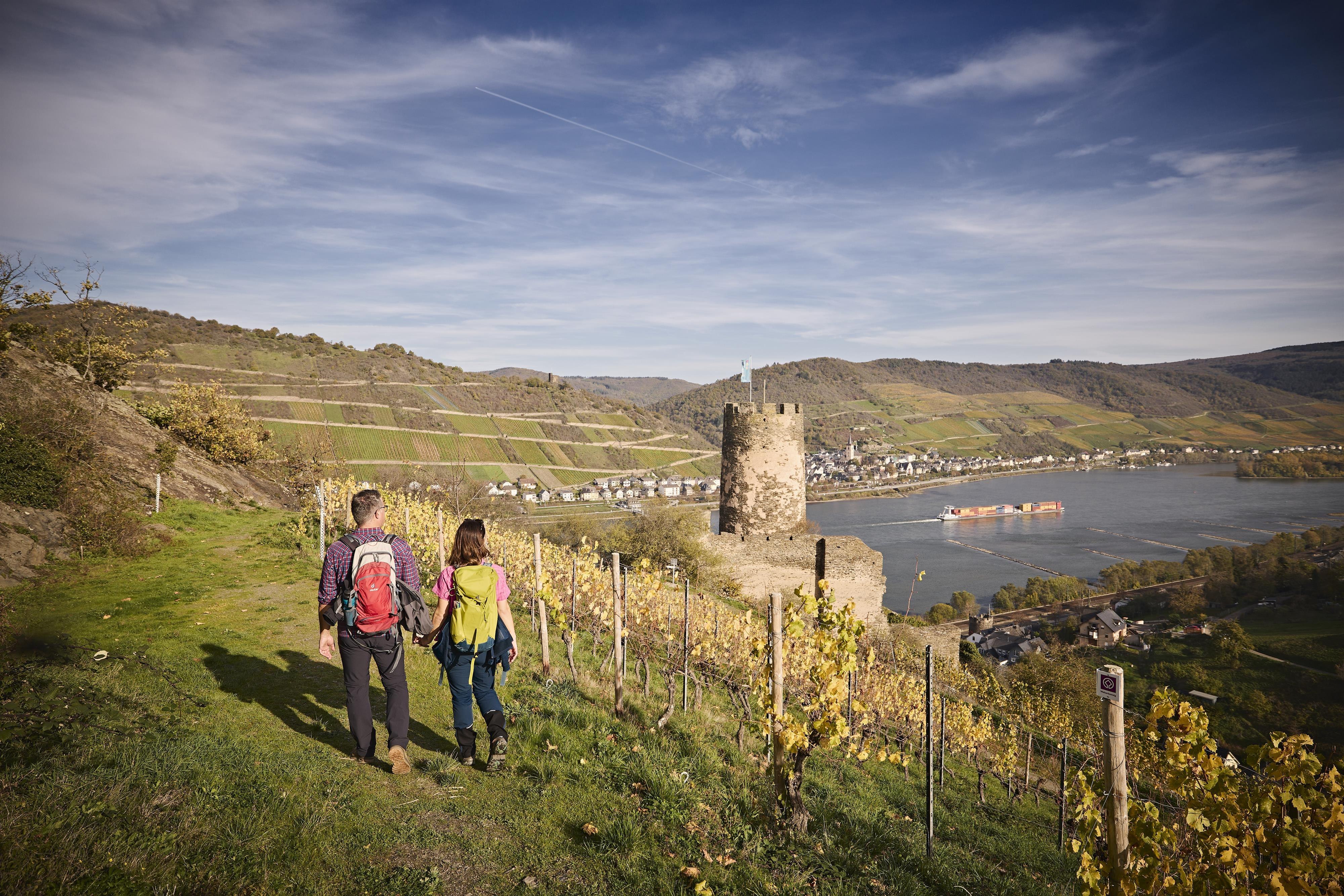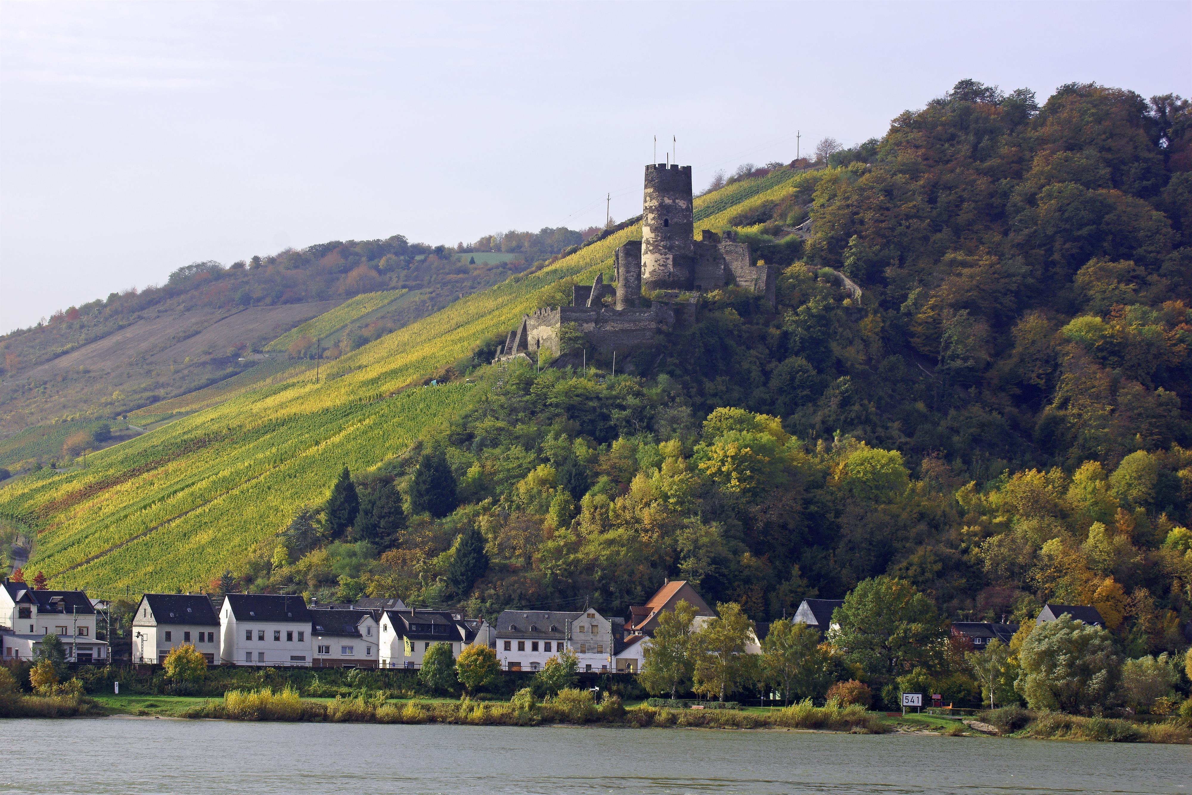Die Ruine Fürstenberg liegt oberhalb des Ortes Rheindiebach inmitten malerischer Weinberge.
