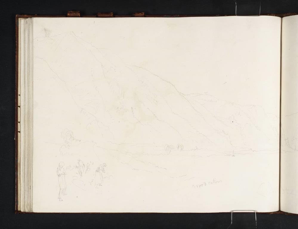 Kurz vor Trechtingshausen zeigt sich von Bacharach kommend für Turner dieser friedlich anmutende Weitblick auf den Rhein - ähnlich zu dem Hirzenacher Motiv. Er schaut zurück auf diese wunderbare Ansammlung von sonnenbeschienenen Burgruinen, die sich in nur einem Bildausschnitt vereinen. In der Entfernung sind Bacharach und Burg Stahleck ebenfalls im Sonnenlicht zu erahnen. Im Vordergrund zeigt Turner Menschen bei der Weinlese. Linksrheinisch lassen sich die Heimburg und Burg Sooneck ausmachen. Auf der rechten Rheinseite deutet Turner das im Schatten liegende Lorch und Burg Nollig an. Burg Sooneck befindet sich heute im Besitz des Landes Rheinland-Pfalz und kann besichtigt werden. Burg Stahleck gehört dem Rheinischen Verein für Denkmalpflege und wird als Jugendherberge bewirtschaftet. Heimburg und Burgruine Nollig sind privat.