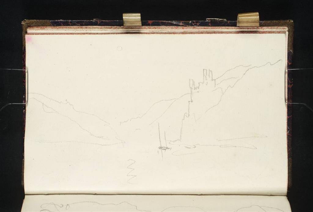 Turner zeigt hier den Ausblick von Trechtingshausen in Richtung Bingen. Die Skizze dafür zeichnet er vom Rheinuferweg aus, als er am 25. August zu Fuß in Richtung Bingen marschiert. Von einem Baum verdeckt ist links von der Bildmitte die Klemenskapelle auszumachen. Auf einer Anhöhe ist rechts ist die Silhouette der Burg Rheinstein dargestellt. Die Straße zeigt tiefe Radspuren und zwei rastende Menschen. Turner beschäftigte er sich auch später noch intensiv mit diesem Ort – insbesondere, nachdem er sich 1840 mit Goethes Farbenlehre auseinandergesetzt hatte. In diesem Werk kam es Turner darauf an, die Szenerie durch das Licht der Abenddämmerung mit leichtem Mondschein und bewölkten Himmel atmosphärisch-stimmungsvoll zu aquarellieren. Burg Rheinstein befindet sich heute in Privatbesitz, wird bewirtschaftet und kann besichtigt werden.