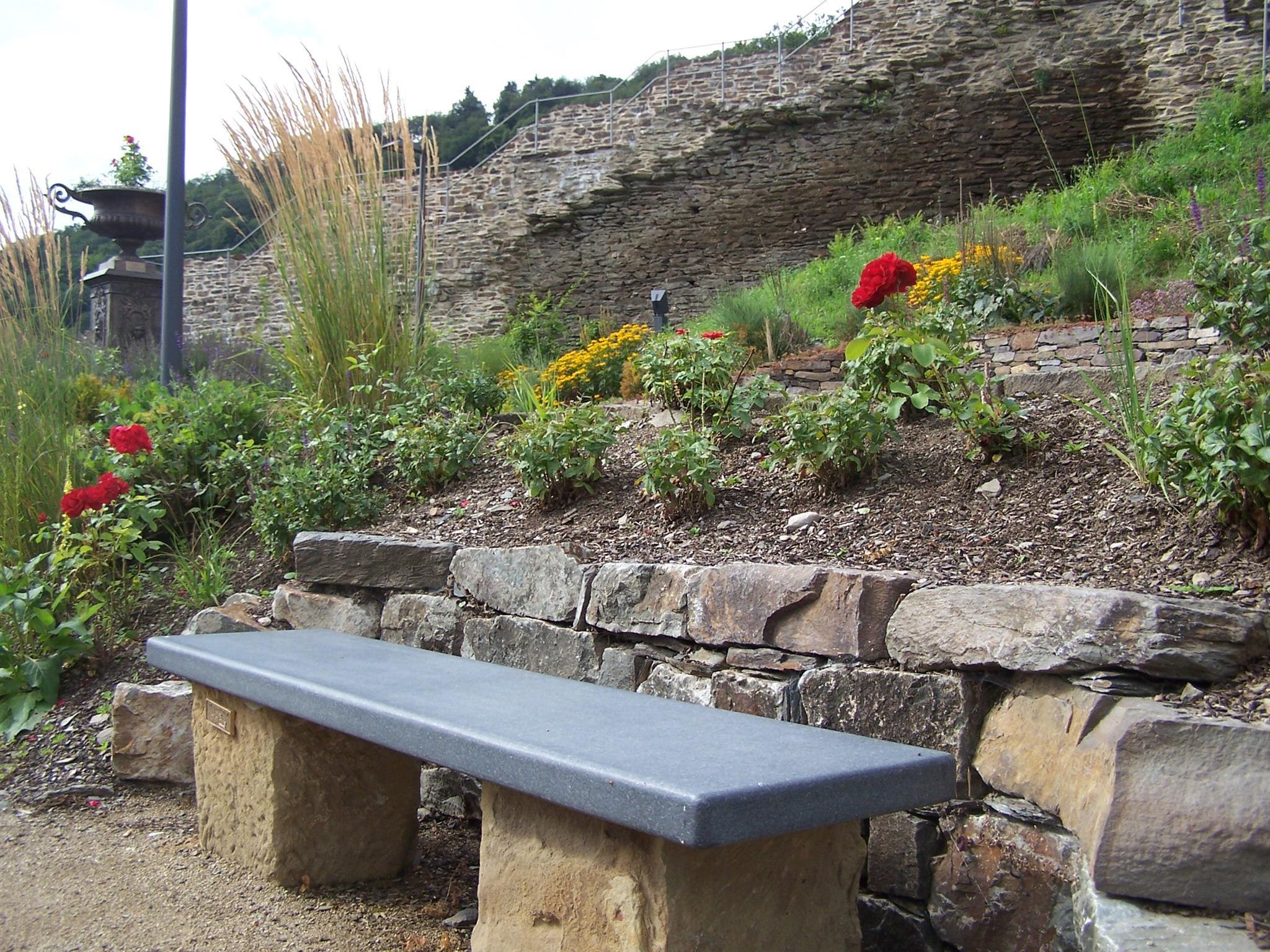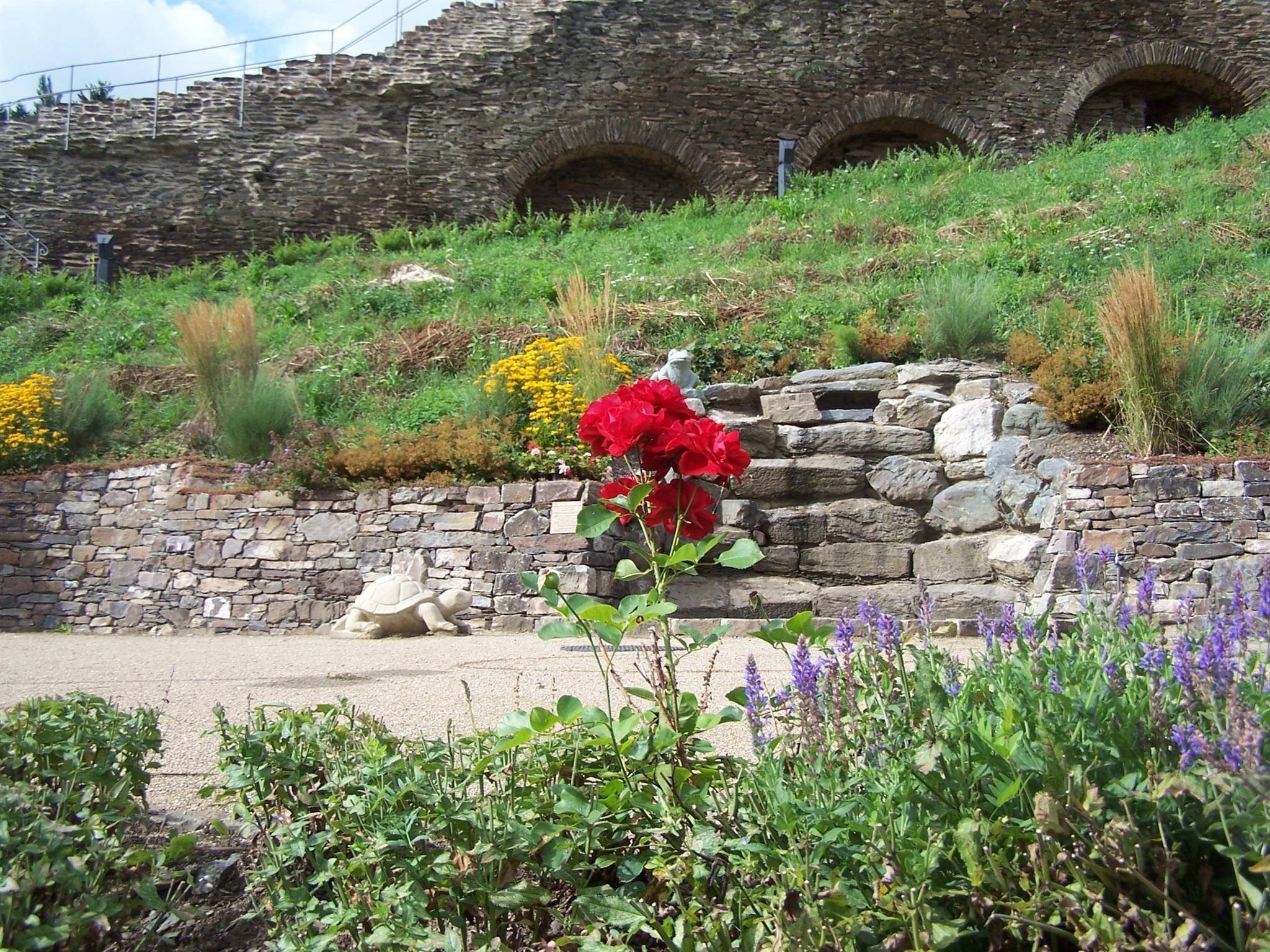 The city wall in Oberwesel on the Michelfeld was particularly important for the defense of the city, since Oberwesel was vulnerable only on its land sides. It was therefore raised several times. However, for a long time the so-called mountain-side town wall did not attract the attention of locals and tourists as the wall on the Rhine front did. It was an insider tip for connoisseurs. This changed when the "Bauverein Historische Stadt Oberwesel e.V." renovated the western city wall piece by piece. Especially when the town created a garden at its feet. In the so-called city wall garden one finds flowering shrubs, perennials, roses and a medicinal herb garden. This "colorful" mixture has created a public garden in front of the impressive backdrop of the historical, walkable city wall. The numerous benches invite you to linger. The garden can be experienced barrier-free. But if you want, you can try the impressive stairs. Very interesting facility at the historical city wall. The garden is open all year round until nightfall.