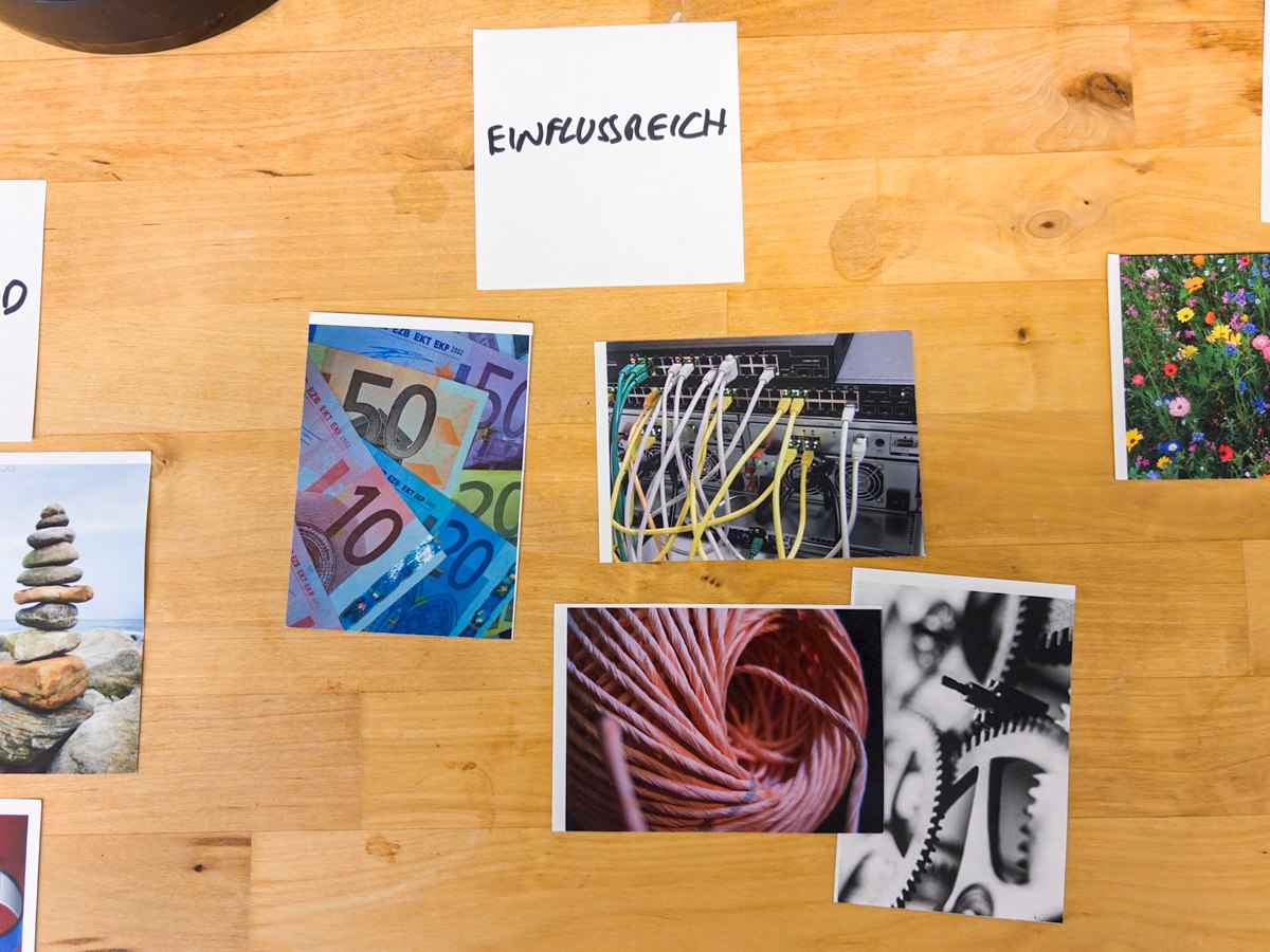 Mit Bildkarten und Farbdiskussionen haben wir erste visuelle Richtungen erkundet. Spannenden Assoziationen: knorzige Bäume für Verwurzelung, ineinandergreifende Zahnräder für Einfluss, blühende Landschaften und Türkistöne für Zukunftsorientierung. Klar wurde: Das Erscheinungsbild soll sich von der Tourismusmarke "Romantischer Rhein" abheben: erhabener, zeitloser, weniger werblich.