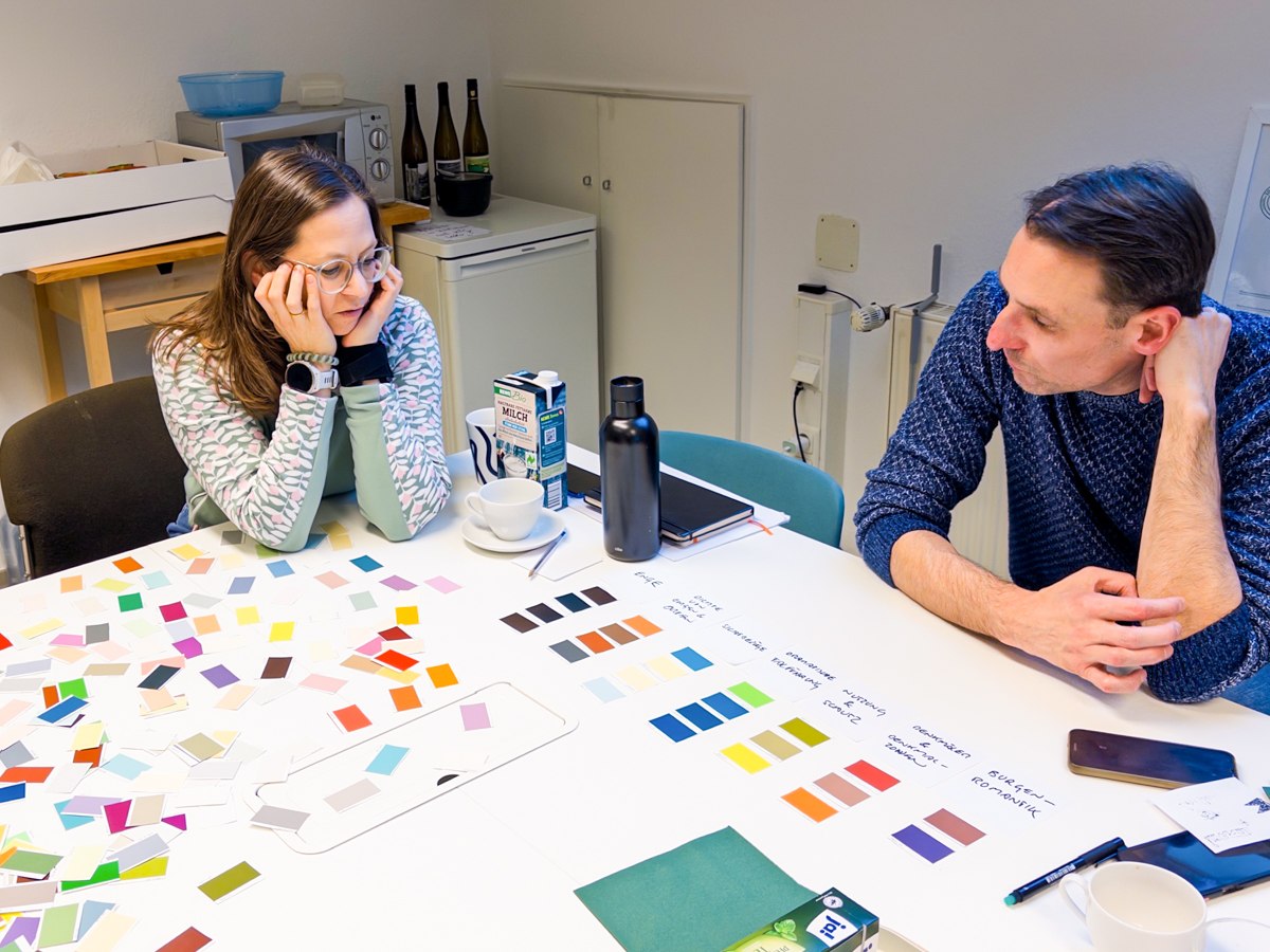 - Moodboards: auf Basis der Bildkarten und Farbdiskussionen