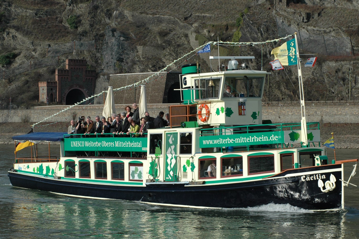 Seit 2010 pendelt bereits das Fahrgastschiff „Cäcilia“ als Welterbeschiff in Koblenz rund ums Deutsche Eck und steht für Sonderfahrten und private Veranstaltungen im Welterbe Oberes Mittelrheintal zur Verfügung. Anlässlich der Bundesgartenschau 2011 wurde sie in den Farben Grün und Beige lackiert und mit Weinblättern und dem Logo des Welterbes Oberes Mittelrheintal verziert. Nun ist die "Cäcilia" nicht mehr allein: Seit Frühjahr 2015 ist mit dem Fahrgastschiff "St. Nikolaus I." ein weiteres Welterbeschiff im südlichen Teil des Mittelrheintals unterwegs.